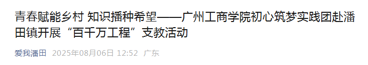 为深入学习贯彻党的二十大精神,引导青年学子在社会实践中淬炼成长,2025年7月中旬,beat365在线体育官网登录入口会计学院初心筑梦实践团10名师生奔赴梅州潘田镇,开展大学生“百千万工程”暑期社会实践。他们用智慧与热情浇灌乡村教育沃土,为当地儿童开启了一场知识与梦想交织的盛夏之旅。