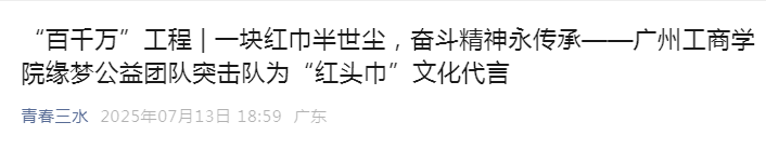 从对话艳阳红太极队、探访展览馆,到聆听粤爷爷的家族故事,缘梦公益团队突击队的调研之旅,是与“红头巾”精神的深度对话。成员们表示,将以此次经历为起点,把“红头巾”精神融入血脉,在乡村振兴等实践中,书写当代青年奋斗答卷,让红头巾精神在新时代持续闪耀,照亮更多逐梦之路。