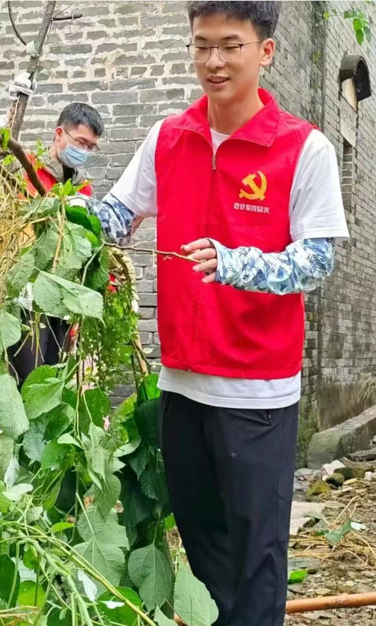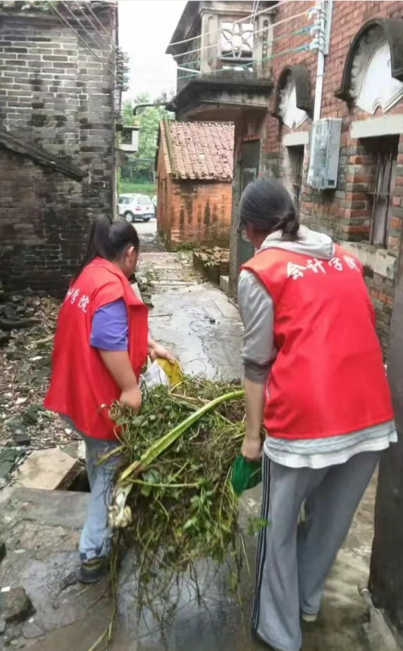 灭蚊行动护家园。会人会语广工商党员先锋突击队在防疫灭蚊的行动中,用实际行动筑牢群众健康防线。先锋队员同当地村干部合作开展村居卫生清理行动,此次行动主要聚焦于房屋周围环境整治、疏通积水,对房屋周围的堆积杂草等蚊虫易滋生区域开展彻底清理。在村头巷尾,队员们化身“灭蚊卫士”,使用灭蚊药对草丛等蚊虫聚集地进行仔细消杀。大家分工协作,用脚步丈量责任,以行动守护村民健康,将会计人严谨细致的特质融入防疫实践。