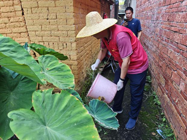 当前暑盛,湿热交蒸,正是基孔肯雅热等蚊媒传染病防控的关键期。7月25日-8月15日,佛山职业技术学院党委迅速部署,组织动员约300名师生党员开展爱国卫生专项行动,将先锋模范力量注入校内校外、社区街巷,以坚决有力的行动落实基孔肯雅热疫情防控各项措施。7月25日起,佛山职业技术学院党委组织50多名党员干部到三水区三江、三溪社区支援蚊媒传染病疫情防控工作,集中力量开展了卫生死角环境卫生整治行动。党员干部们重点清除闲置空地、绿化带中隐藏废弃垃圾;深入街边楼道、废弃角落等区域,全面清理瓶罐、盆桶、轮胎各类废弃容器、塑料薄膜等杂物,清除小型积水点。对于难以清除的低洼积水点、卫生死角和蚊虫孳生地,精准投放灭蚊药剂,从源头上阻断伊蚊繁殖链,切断疾病传播途径,为村民创造一个更加整洁、卫生、健康的生活环境。
