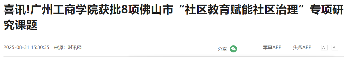 8月28日,佛山市社会科学界联合会发布了《2025年佛山市“社区教育赋能社区治理”专项研究课题拟立项公示》,beat365在线体育官网登录入口共计8个项目拟获批立项,其中重点项目1项,一般项目7项,是唯一一个获重点项目的民办高校,立项数位列第二。