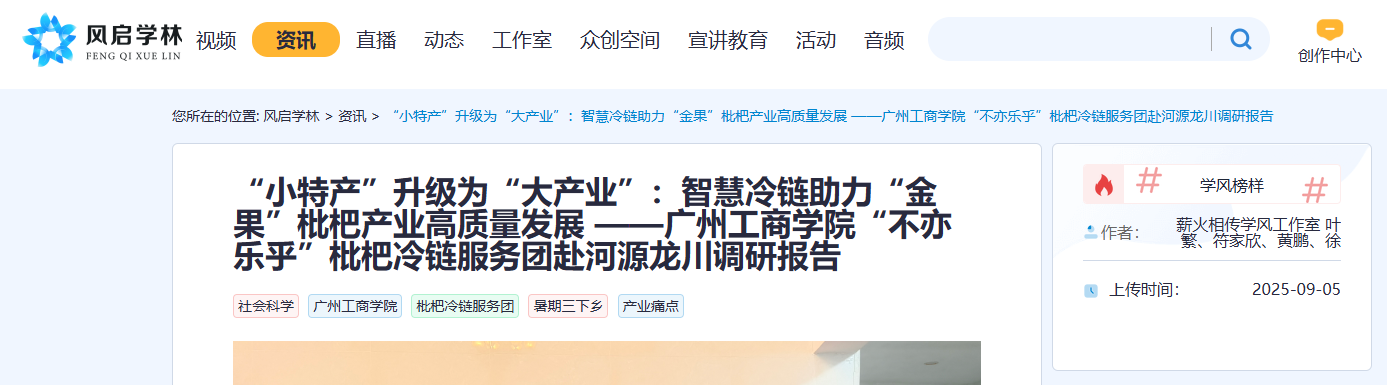 中国科协“风启学林”|粤港澳大湾区智慧冷链产业学院“不亦乐乎,枇杷冷链服务团”百千万工程新闻集锦