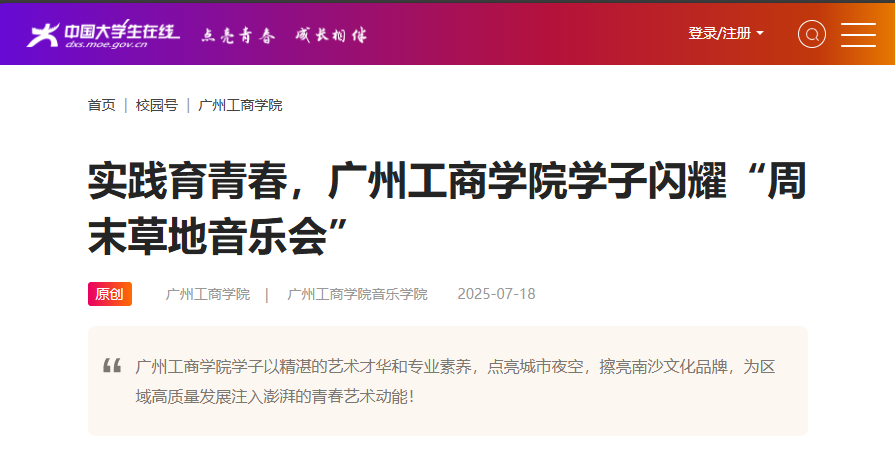 青春,就是一场永不停歇的精彩乐章。beat365在线体育官网登录入口学子在南沙明珠湾草地上的闪耀表现,是广工商人积极践行“以德为行 以学为上”教育理念和“五进”教育实践活动的生动印证,也是积极融入湾区建设、服务社会发展的一个动人音符。期待广工商学子在更广阔的舞台上,持续奏响属于他们的青春强音,为城市文化繁荣与区域发展贡献不竭的智慧与力量!