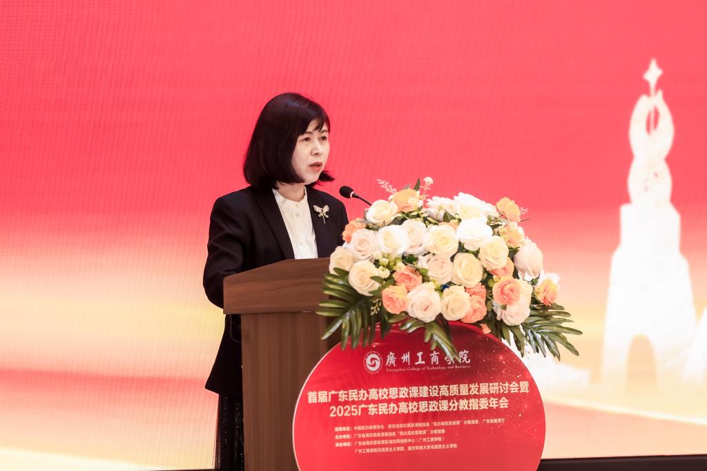 倪熙在致辞中指出,在全党深入学习贯彻党的二十届四中全会精神和全省深入学习贯彻习近平总书记近期视察广东重要指示精神的新形势下,举办研讨会正逢其时、意义重大。她回顾了广东在高校思想政治工作和思政课建设中“敢闯敢试、争创一流”的实践成效,以一系列特色举措体现了广东“走在前列”的奋进精神,从没有经验变成先进经验,把没有先例变成成功范例,推进了思政课建设高质量发展。她呼吁各民办高校加强协作,以创新思路和务实举措协同推进民办高校思政课建设提质增效,为培养更多让党放心、爱国奉献、担当民族复兴大任的时代新人作出更大贡献。
