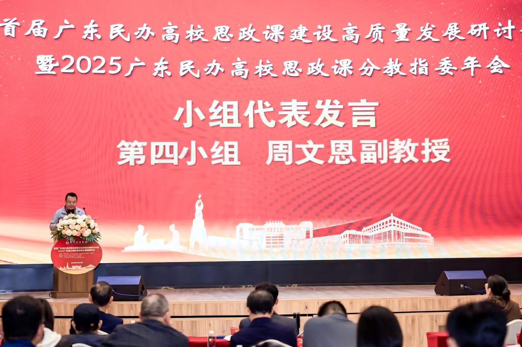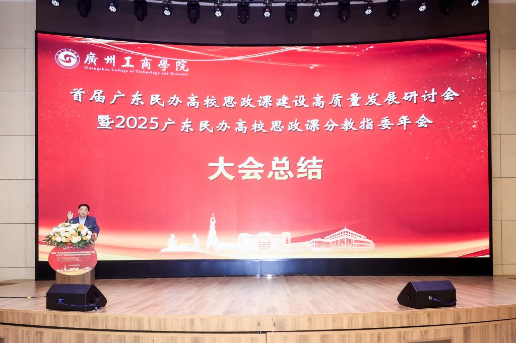 教育部思想政治理论课教指委委员兼分教指导委员会副主任、广东省高校思政课教指委总教指委副主任夏文斌教授作总结发言。他指出,此次研讨会充分展现了广东民办高校思政课建设的责任担当与创新活力,希望大家以此次会议为契机,持续深化理论武装、强化问题导向、突出民办特色,将研讨成果转化为推动思政课高质量发展的具体举措,共同书写立德树人新篇章。