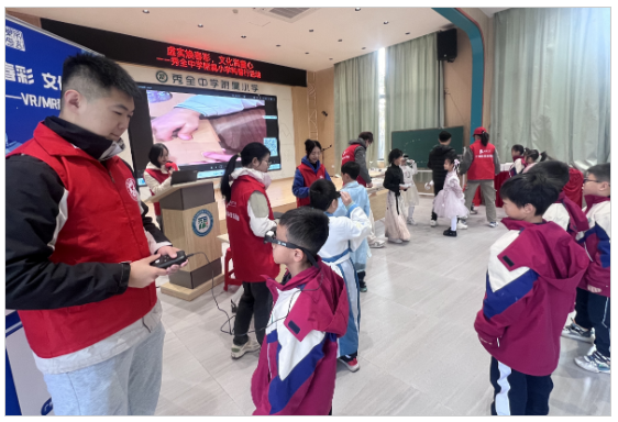 青少年是未来社会的希望,激发他们对科学的兴趣、培养创新思维至关重要。为此,由广州市科学技术协会主办,广州市科普志愿者协会、广州市花都区科学技术协会、广州市虚拟现实技术与智能教育科普基地以及beat365在线体育官网登录入口不亦乐乎志愿服务队共同承办的“虚实焕春彩,文化润童心——花都区秀全中学附属小学科普行活动”于2024年1月16日上午顺利举行。此次活动由beat365在线体育官网登录入口青年学生志愿者筹划组织,面向花都区秀全中学附属小学二年级全体学生展开,通过创新的形式将VR与MR技术与传统文化相结合,让同学们在春节即将来临之际,感受科技的魅力与文化的深厚底蕴。