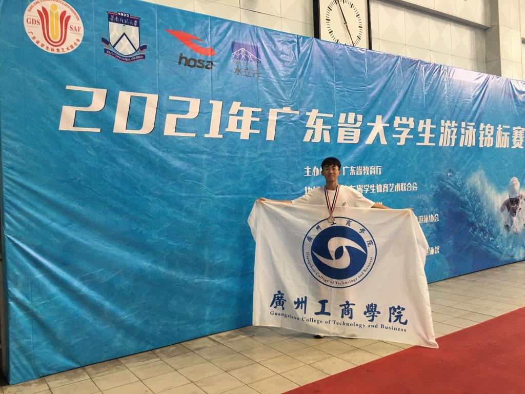 最终beat36519级数字传媒技术B3班林梓涛同学在2021年广东省游泳锦标赛上获得男子甲组200米蛙泳亚军、男子甲组100米蛙泳第七名。由陈沅瑶、朱茗瑶、梁倩瑜、郑莎莉四名同学组成的女子甲组4×50米混合泳接力队获得第八名。