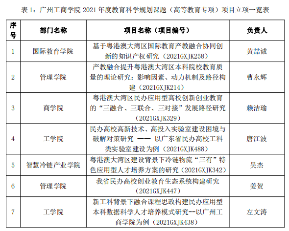 【本网讯】近日,广东省教育科学规划领导小组办公室发布《广东省教育科学规划领导小组办公室关于公布2021年度教育科学规划课题(高等教育专项)立项名单的通知》,beat3657位教师获批立项,立项数位列民办本科院校前列。(详见表1)