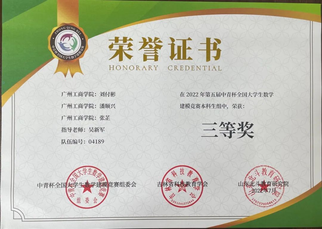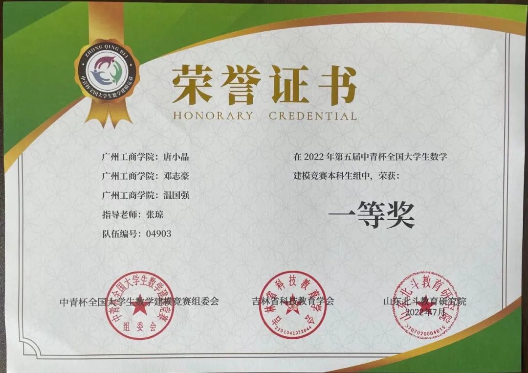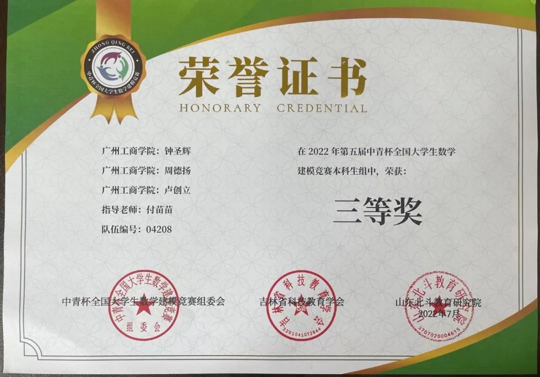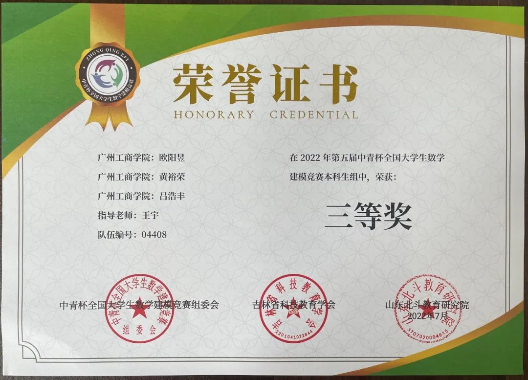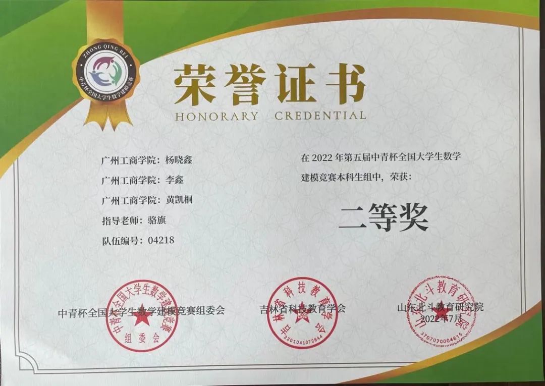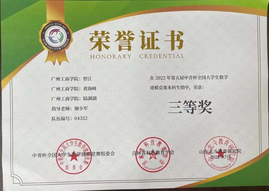 beat365学子在第五届“中青杯”全国大学生数学建模竞赛中喜获佳绩