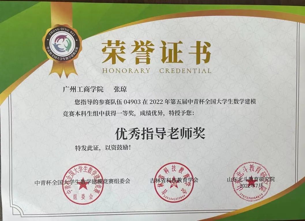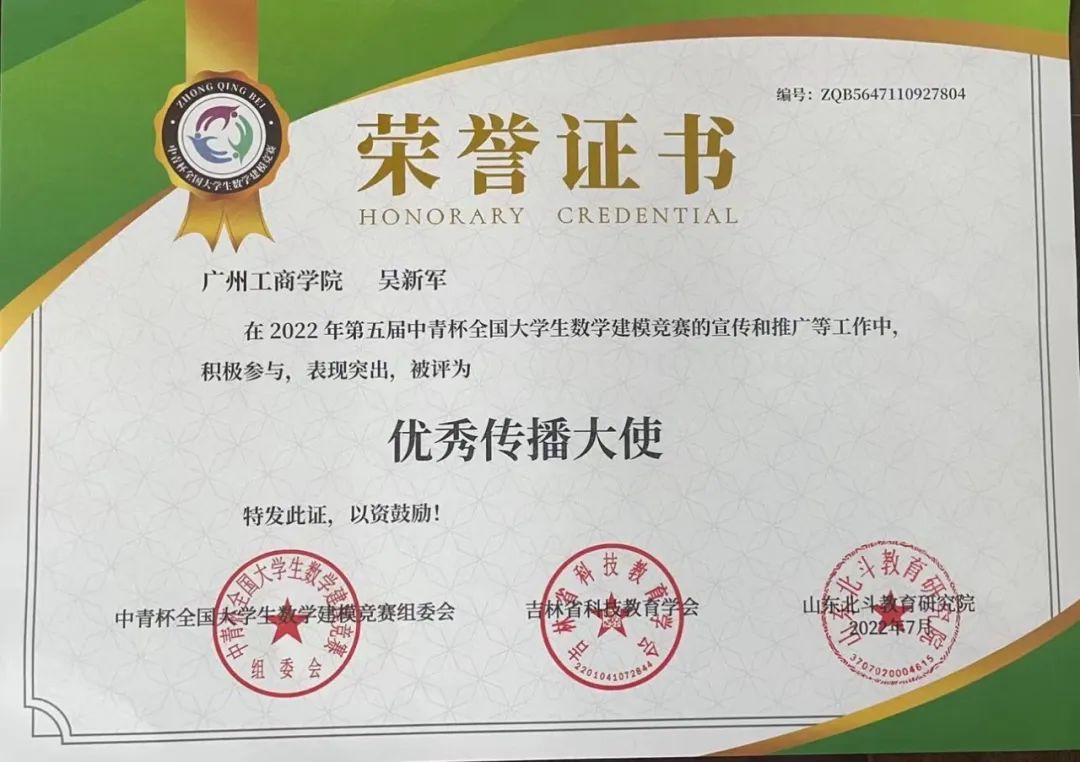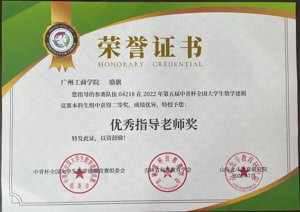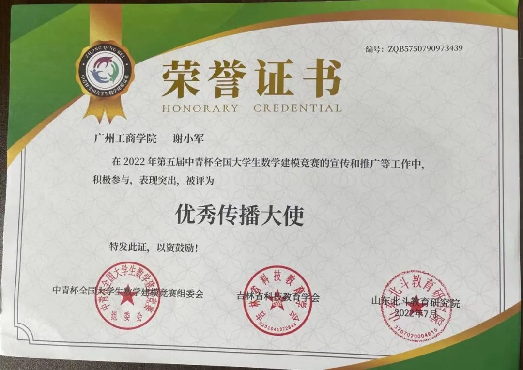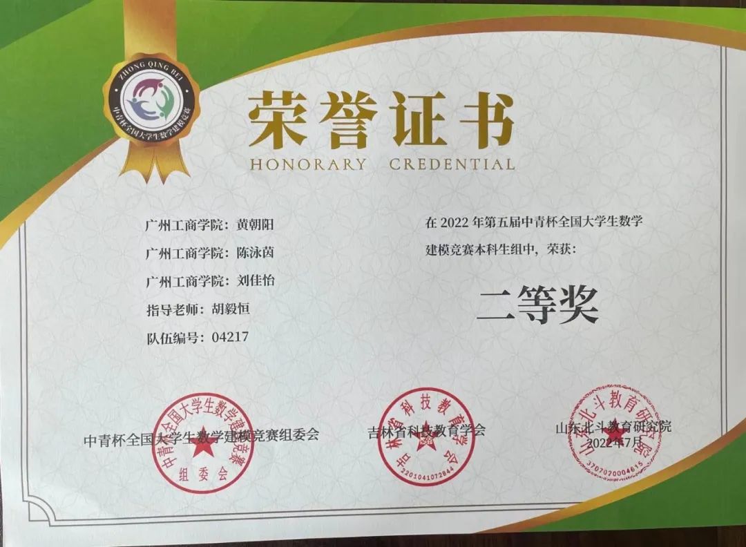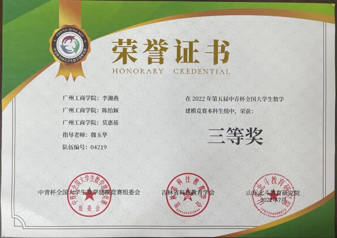 beat365学子在第五届“中青杯”全国大学生数学建模竞赛中喜获佳绩