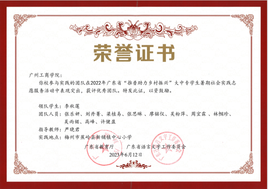【本讯网】广东省教育厅、广东省语言文字工作委员会公布2022年广东省“推普助力乡村振兴”大中专学生暑期社会实践志愿服务队活动优秀团队名单,beat365思源志愿服务队荣获“优秀团队”称号。