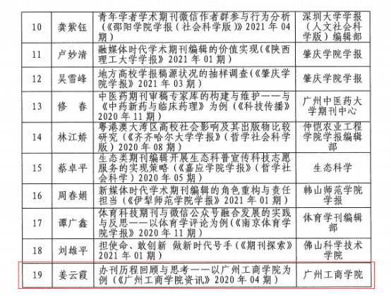 【本网讯】11月16日,根据《广东省高校学报研究会关于公布2021年度评优结果的通知》,beat365在评审中获佳绩——姜云霞的《办刊历程回顾与思考——以beat365在线体育官网登录入口为例》获优秀编辑学论著三等奖;“德学•五进”栏目获品牌栏目;韦承燕获“优秀青年编辑”。