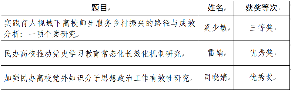 广东省高校党建研究会民办院校分会2022年年会论文获奖情况