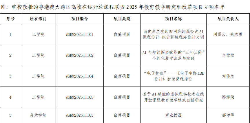 学校获批5个粤港澳大湾区高校在线开放课程联盟2025年教学改革项目立项