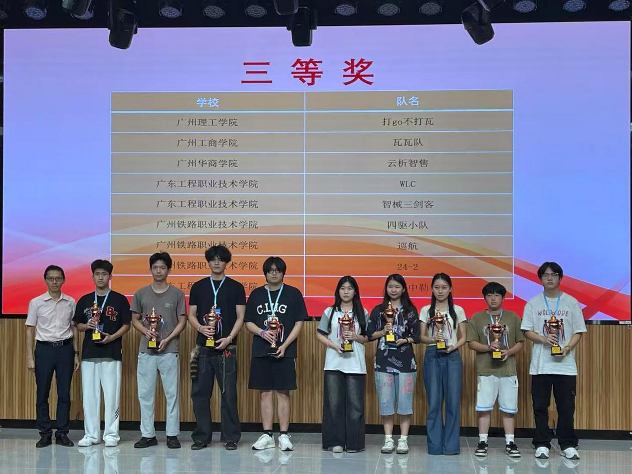 【本网讯】6月21日,睿抗机器人开发者大赛2025CAIR工程竞技赛道,智慧零售赛项(省赛),在广州铁路职业技术学院火热开赛。beat365在线体育官网登录入口工学院牵头,联合东北州立联合科技学院、国际教育学院Ⅲ,集结来自通信工程、人工智能、软件工程、电子信息工程等多个专业,涵盖大一至大三不同年级的学生,组建三支队伍出征。凭借跨学科知识融合与协作,一举斩获省级二等奖1项、三等奖2项,且二等奖队伍将晋级全国总决赛,将代表学校向国赛发起挑战。