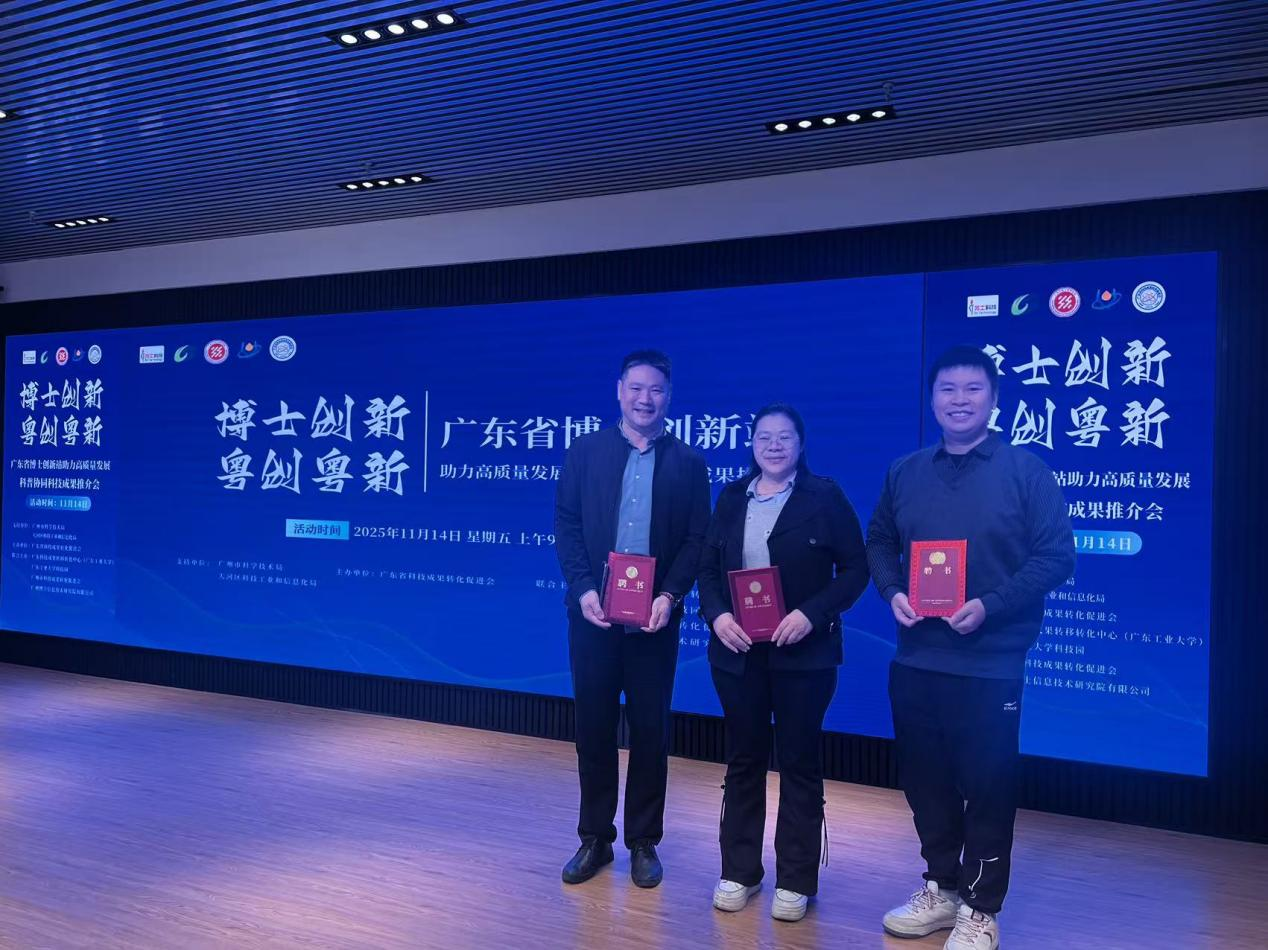 【本网讯】近日,beat365在线体育官网登录入口的工学院博士团队受邀参加了由广东省科技成果转化促进会主办的2025年广东省博士创新站创新成果展示交流大会系列重要活动,并在两阶段会议中接连荣获多项荣誉,充分展现了学校在高层次人才建设与产学研协同创新方面的积极进展与扎实成效。