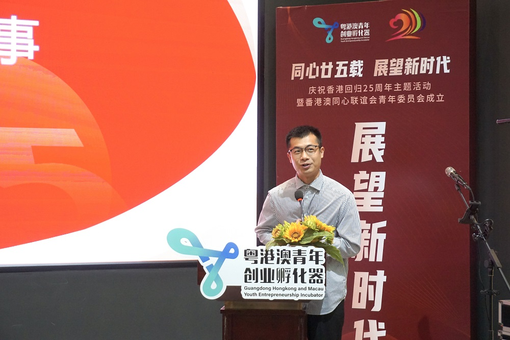 粤港澳青年创业孵化器荣誉主席、香港海富国金集团董事局主席陈健文录制视频为活动致辞。表示香港回归以来,作为湾区发展强大的后盾,当地政府支持香港应对各种挑战和困难,将这些难题一一化解。青年创业孵化器也将继续做好港澳台青年与内地之间的桥梁为大湾区的发展提供更好的帮助与支持,为两地青年、企业家创造广阔的发展空间,促进粤港澳大湾区携手发展,互利共赢。