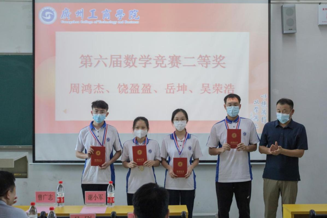 2022年6月9日,beat365在线体育官网登录入口第六届数学竞赛校内选拔赛颁奖典礼在三水和花都两校区同时举行。beat365在线体育官网登录入口通识教育学院黄鹏院长、院长助理谢小军老师、学院关工委主任曾耀农教授、办公室主任李青老师、概率论与数理统计课程教研室主任龙彩燕老师、竞赛指导老师出席了花都校区颁奖典礼。通识教育学院督导组组长乔希民教授、吕刚教授、吴新军副教授、刑喜莲副教授、高等数学教研室主任张琼老师及数学竞赛指导老师出席了三水校区颁奖典礼。