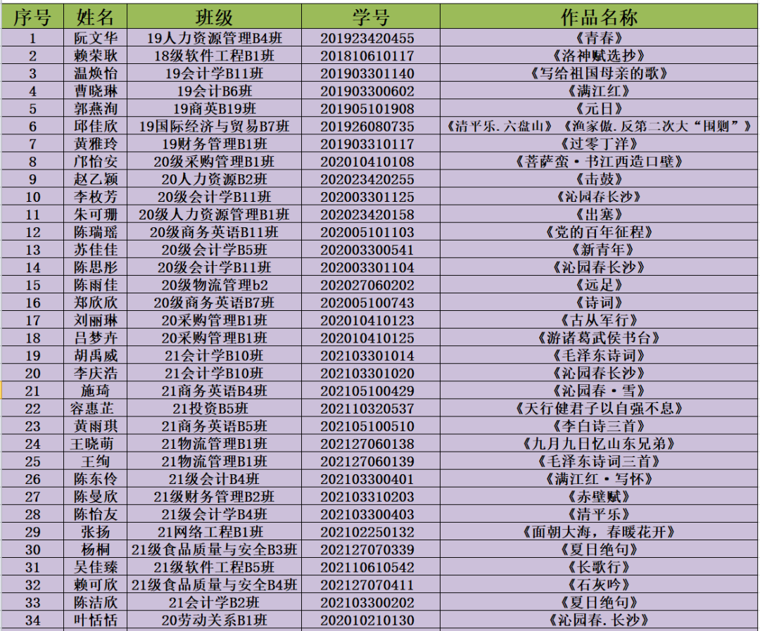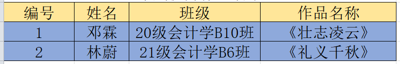 为传承发展中华优秀文化,激发社会大众特别是青少年对汉字书写的兴趣,提高规范使用汉字的意识和能力。以及通过传播篆刻文化与汉字历史文化知识,在师生中普及篆刻技能,传承弘扬中华优秀传统文化,加强规范汉字书写、开展书法教育的要求,传承中华优秀传统文化。经过一个月的宣传与征集,共征集到书法作品54幅(含1幅教师作品),篆刻作品两件。现将获奖情况公布如下: