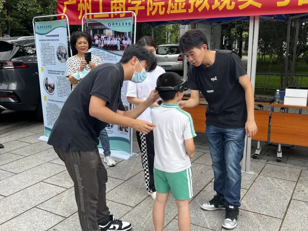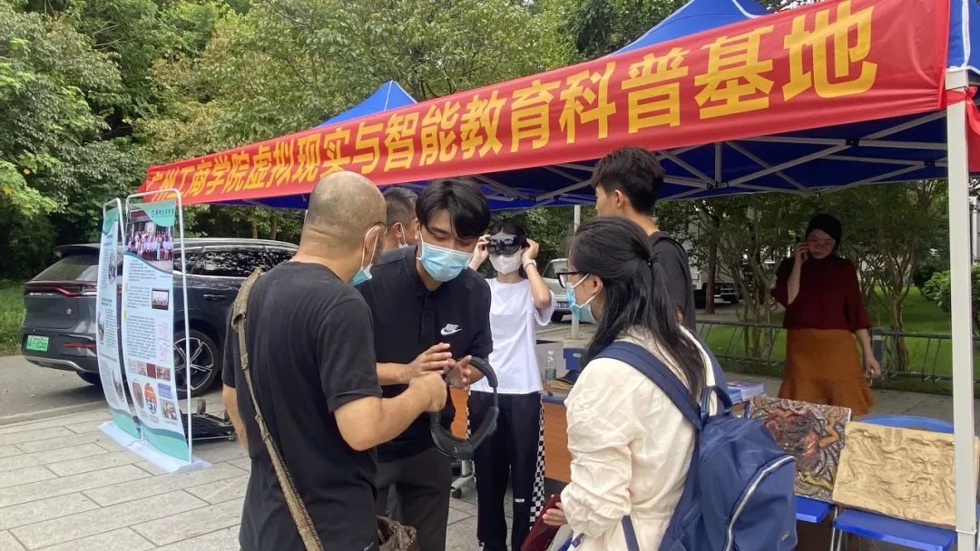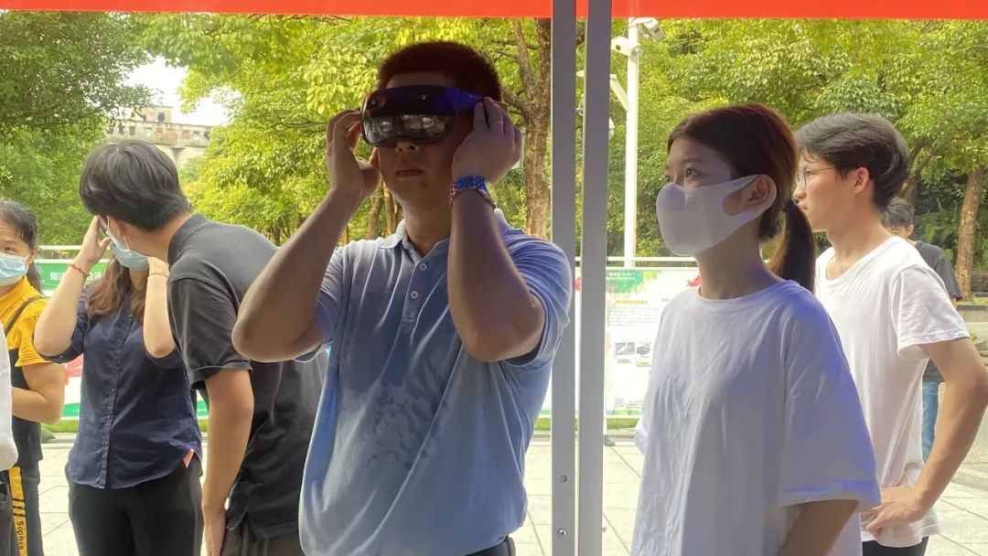 beat365虚拟现实技术与智能教育科普基地学生志愿者,现场布置相关VR/MR展品,为现场领导、党员与市民朋友们详细介绍了beat365MR应用项目成品。