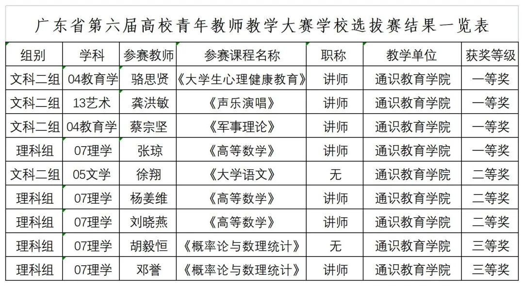 2022年5月20日,广东省第六届高校(本科)青年教学大赛beat365在线体育官网登录入口选拔赛圆满结束。校级选拔赛共分为文科组、理科组、工科组、思政组四个组别,全校49名优秀参赛教师齐聚一堂,展示教学风采,切磋教学技艺。通识教育学院高度重视,积极组织教师参加本届赛事,在学校相关领导及学院领导的关心和支持下,学院参赛教师骆思贤、龚洪敏、蔡宗坚获文科二组一等奖,张琼获理科组一等奖,徐翔老师获文科二组二等奖,杨姜维、刘晓燕获理科组二等奖,胡毅恒、邓誉获理科组三等奖的好成绩。其中获得一等奖的老师将代表学校参加省赛。
