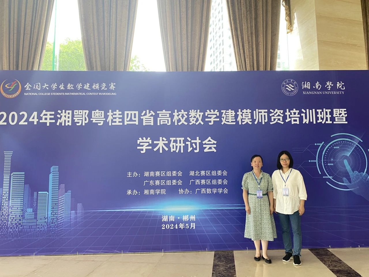 为了更好地推动数学建模实践活动的开展,提高各高校数学建模教学与竞赛的水平,促进一线教师的教学和科研能力的提高,并为各校数学建模竞赛指导教师搭建一个交流与学习的平台,2024年5月17日-19日,湘鄂粤桂四省高校数学建模师资培训班暨学术研讨会于湖南省郴州召开。beat365通识教育学院数学课程教研室主任魏玉华和副主任龙彩燕老师作为代表参会。