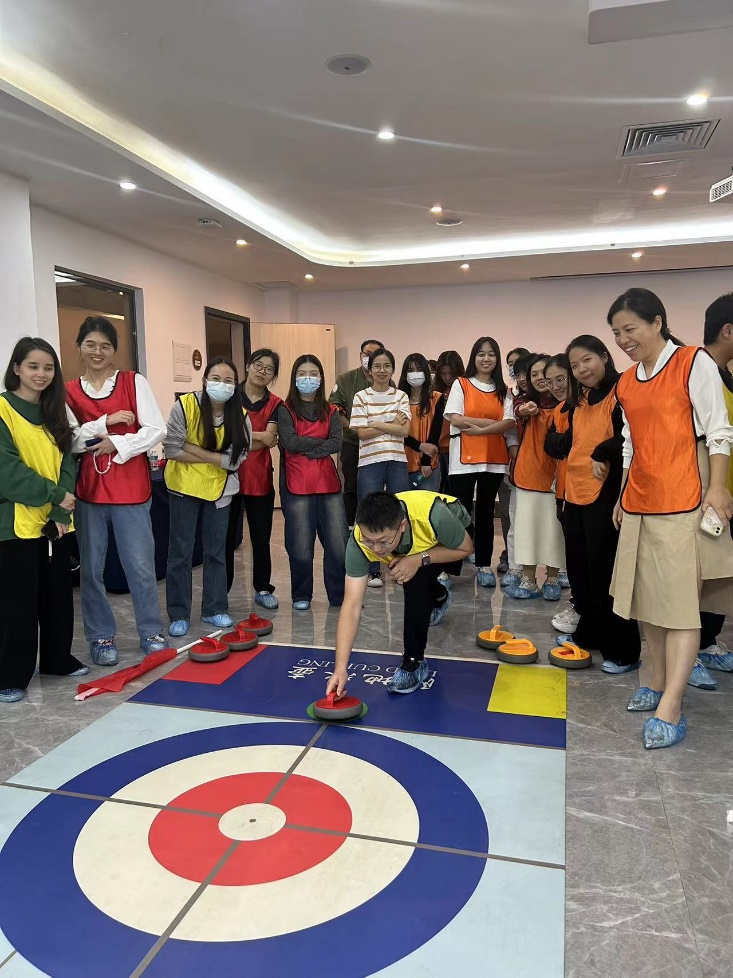 11月25日晚上的团建活动——旱地冰壶比赛,来自不同学院的70余名教师被分为四支队伍,进行激烈的旱地冰壶比赛。每支队伍都展现出了极高的竞技水平和团队协作精神,共同为赛场增添了无数精彩瞬间。此次团建活动不仅让教师们在繁忙的工作之余得到了放松和运动的机会,更增强了彼此间的友谊和团队合作精神。
