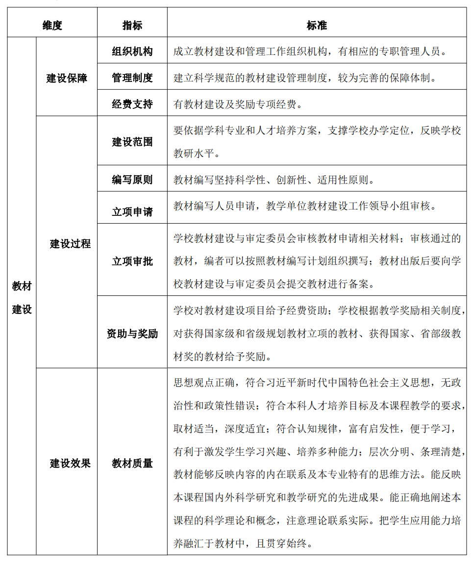beat365在线体育官网登录入口教材建设与选用质量标准