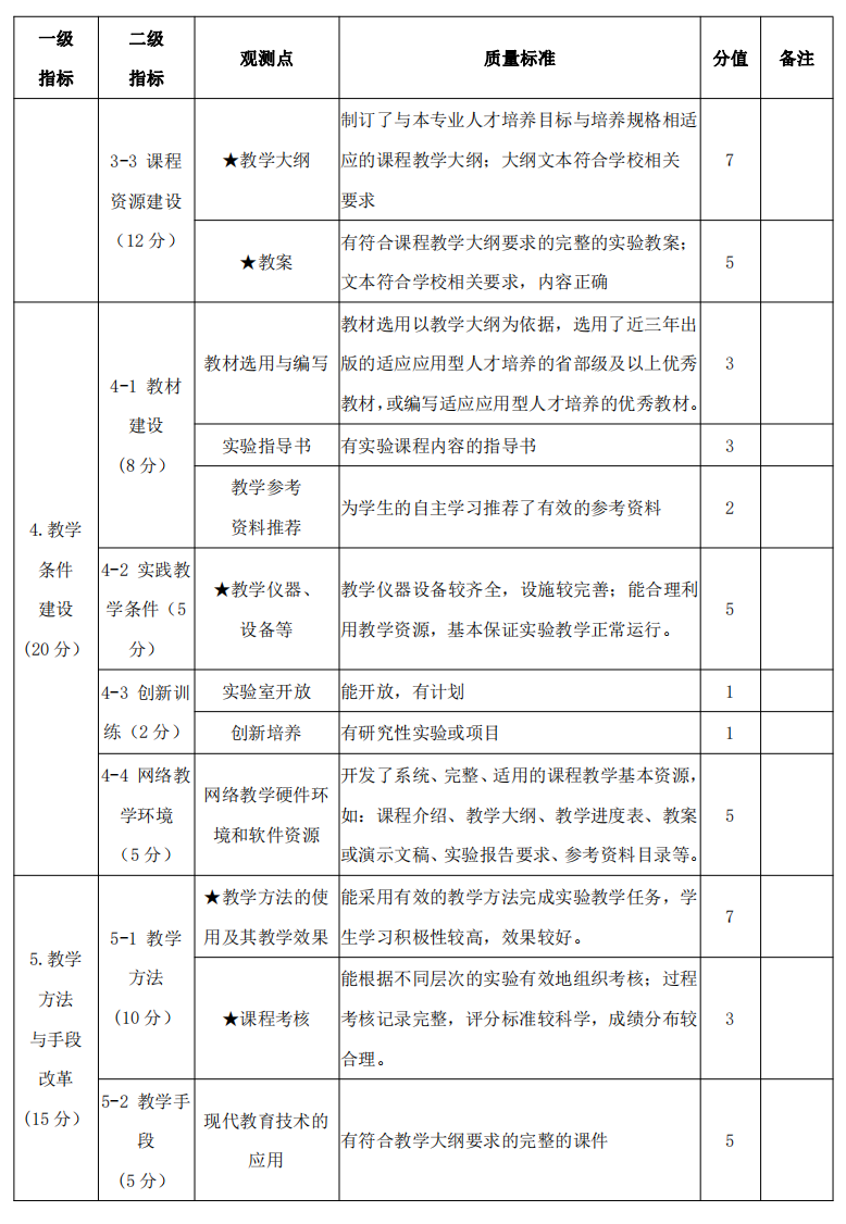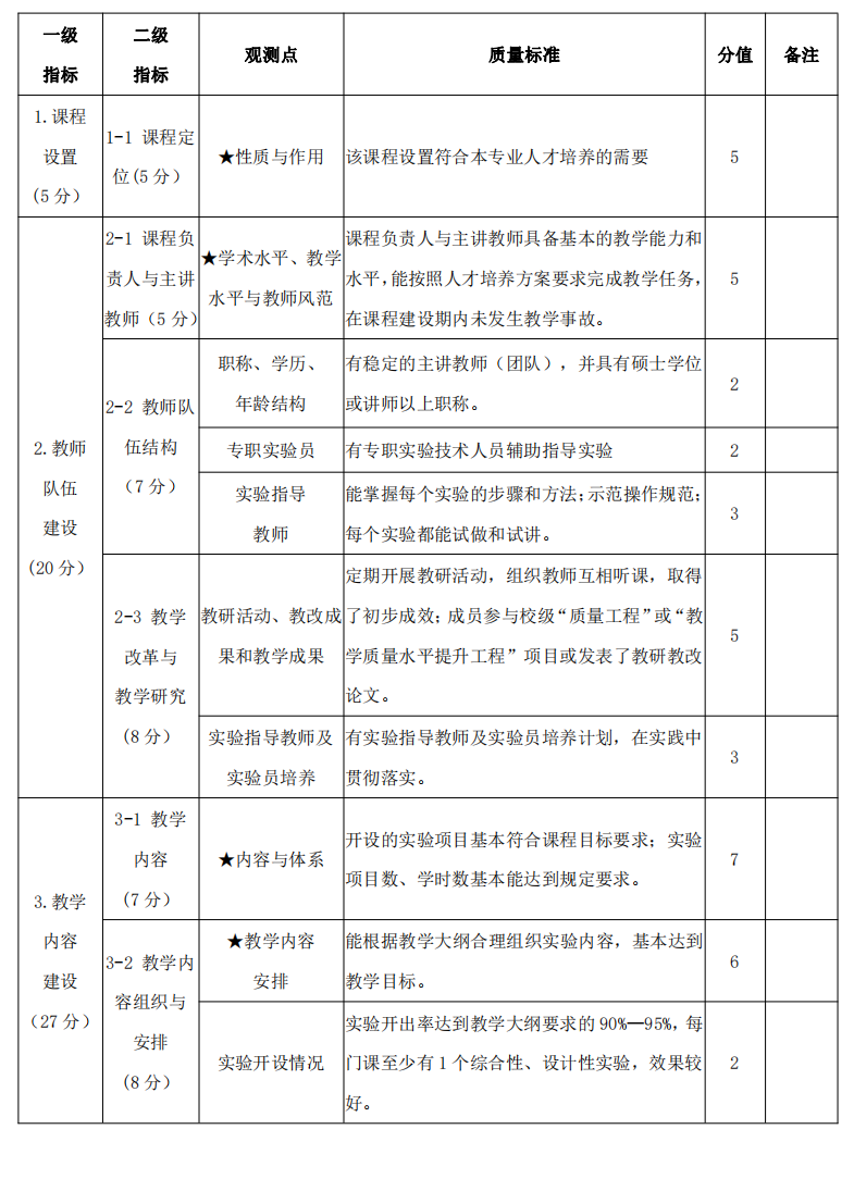 beat365在线体育官网登录入口学院合格课程(实验课程)建设质量标准