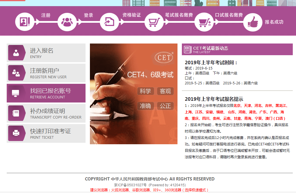 2.全国统一报考网址为:http://cet-bm.neea.edu.cn ,