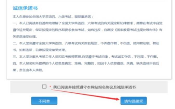 (2)按要求注册账号成功后,返回网站点击“进入报名”,再点击“开始报名”,阅读诚信承诺书后勾选已阅读并点击“同意”。