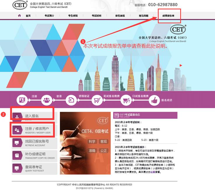 附件1:全国大学英语四、六级考试网上报考流程