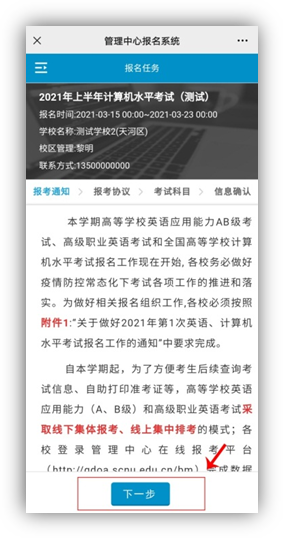 请认真阅读报考通知,点击“下一步”按钮,进入下一步操作;