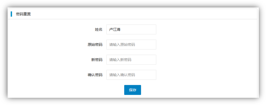 点击“修改密码”栏目,可修改个人用户密码(建议由字母和数字组成,一般不少于6位);密码必须从字符(a-z,A-Z)、数字(0-9)、符号(~!)#$%^&*()_<>)中选择任意两种进行组合,长度至少为8位,由非纯数字或字母组成;