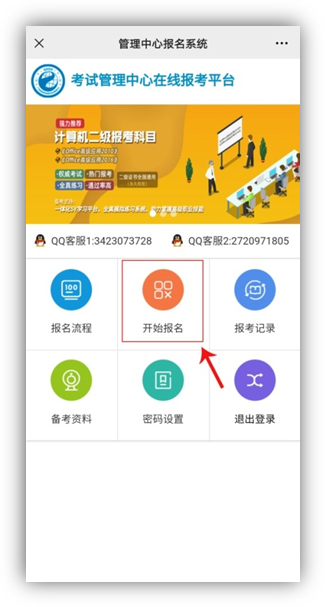 点击“开始报名”按钮,选择报考的科目类型(例如:2021年上半年计算机水平考试)点击“进入报名”;