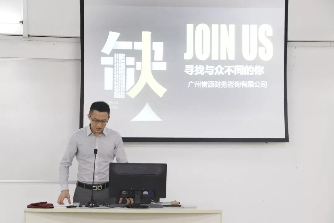 本次宣讲会主要是为给即将进入实习阶段的学生提供一个实习的平台。程总首先给同学们介绍了广州誉源财务咨询有限公司的大致状况,介绍了公司的工作环境,薪资构成和薪资福利人才发展渠道,让同学们全面地了解公司、熟悉公司待遇。之后,程总给同学们讲述了公司的人才需求、岗位描述、综合素质、任职要求、应聘基本流程及联系方式。