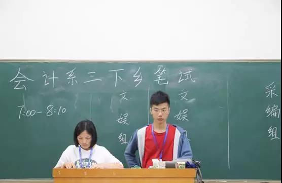 缘梦三下乡分为支教组、文娱组、采编组、调研组和后勤组,即便外面是狂风也阻挡不了来应试的同学,同学们怀着激动的心情走进了教室,笔试开始同学们都低头认真作答,丝毫不敢怠慢,即便外面风声呼呼作响也能听到同学们笔尖滑动纸张的清脆声音。