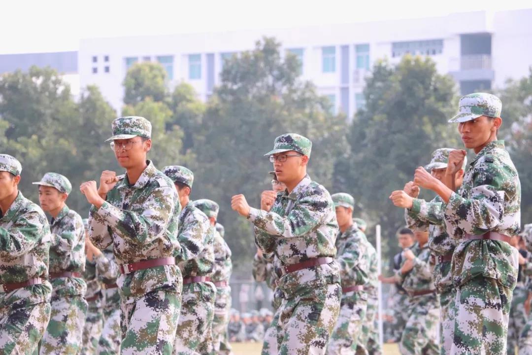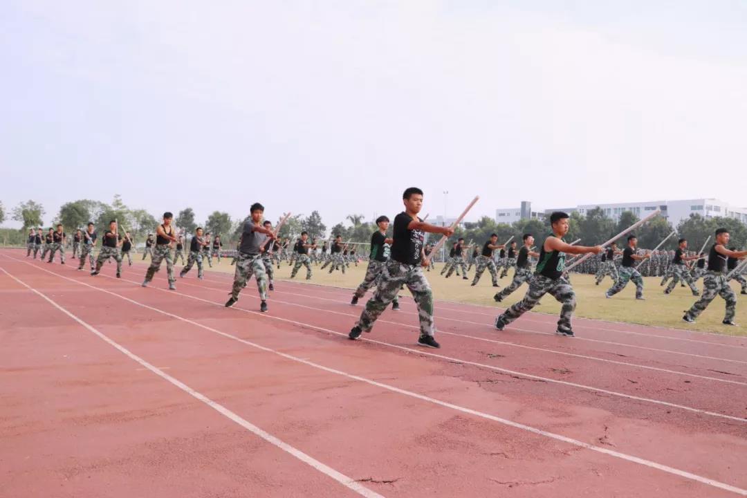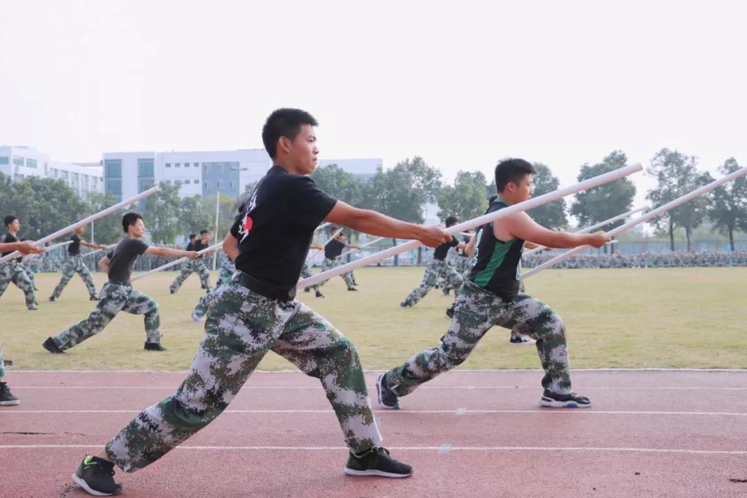 伴随着一声声口令,杀声震天的吼声,刚劲有力的动作,都是新生经过十二天军训磨练出来的。