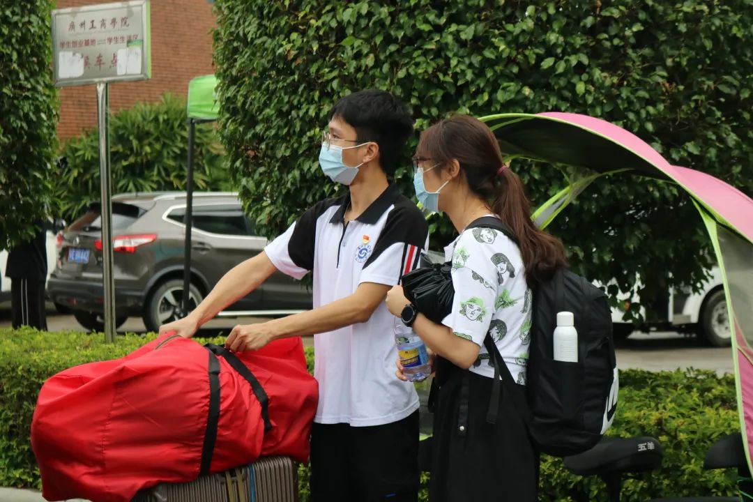 萌新们脸上洋溢着的笑容无不诠释着他们对广工商的喜爱,同样欣喜的还有在校外目送着萌新们离去背影的父母,一位萌新的母亲在采访中表示:希望自己的孩子能够在大学这几年里学习好专业知识,不浪费学习的光阴,并且提高独立生活的能力。