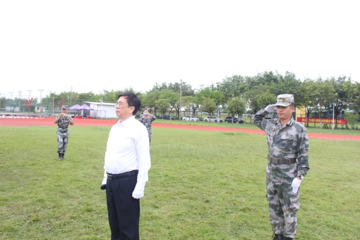 在庄严的国歌奏起后,结营仪式拉开序幕。首先由学院院长邝邦洪教授检阅各个方阵,同学们用整齐划一的声音:“院长好!”“为学院争光!”作出回应,展现出他们对学院炽热的爱。