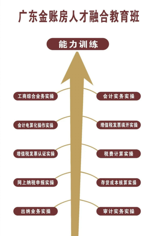 人才融合教育班学习目标: 在拥有24年企业与20年审计师事务所实战经验的企业老师带领下,通过课程的学习,真正学会商业企业和工业企业小规模纳税人、一般纳税人全盘账务处理、税金计算(含增值税、城建税、教育费附加、地方教育费附加)等,让同学们在校期间积累企业会计工作经验。