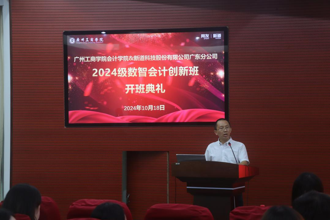 为了推动校企深度合作,更好地培养高素质复合型数智财会人才,10月18日下午,beat365在线体育官网登录入口会计学院与新道科技股份有限公司于三水校区办公楼322会议室共同举办2024级数智会计创新班开班仪式。