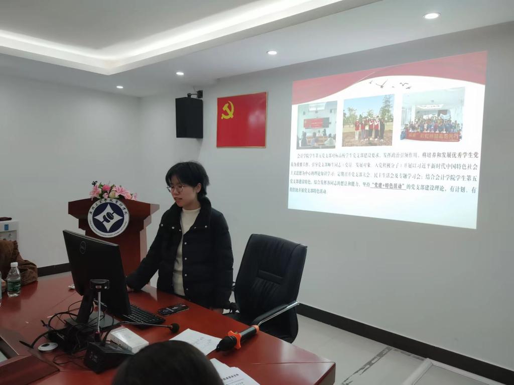 【本网讯】为深入学习贯彻党的二十大精神和党的二十届三中全会精神,进一步夯实基层党组织建设,提升基层党建工作质量,推动全面从严治党向基层延伸,1月7日下午,会计学院党委在院部楼311召开2024年度党支部书记述职报告会。教工和学生8个党支部主要负责同志就本支部年度工作开展情况进行总结,提出下一年工作计划。学院党委成员、支部书记参会,会议由党委组织委员王萌主持