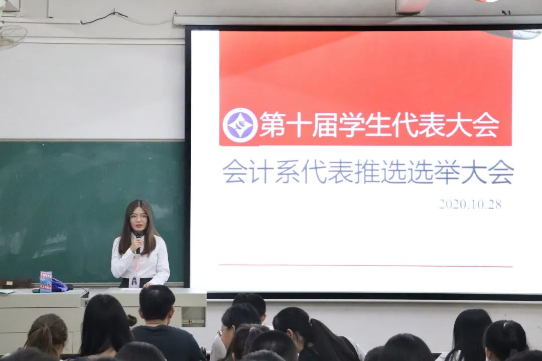 本次代表推选会顺利结束,恭喜陈晓琪、黄怡琳、李媚等39位同学被选为第十届学生代表大会会计系代表团正式代表,其中陈晓琪同学被选为第十届学生代表大会会计系代表团团长。