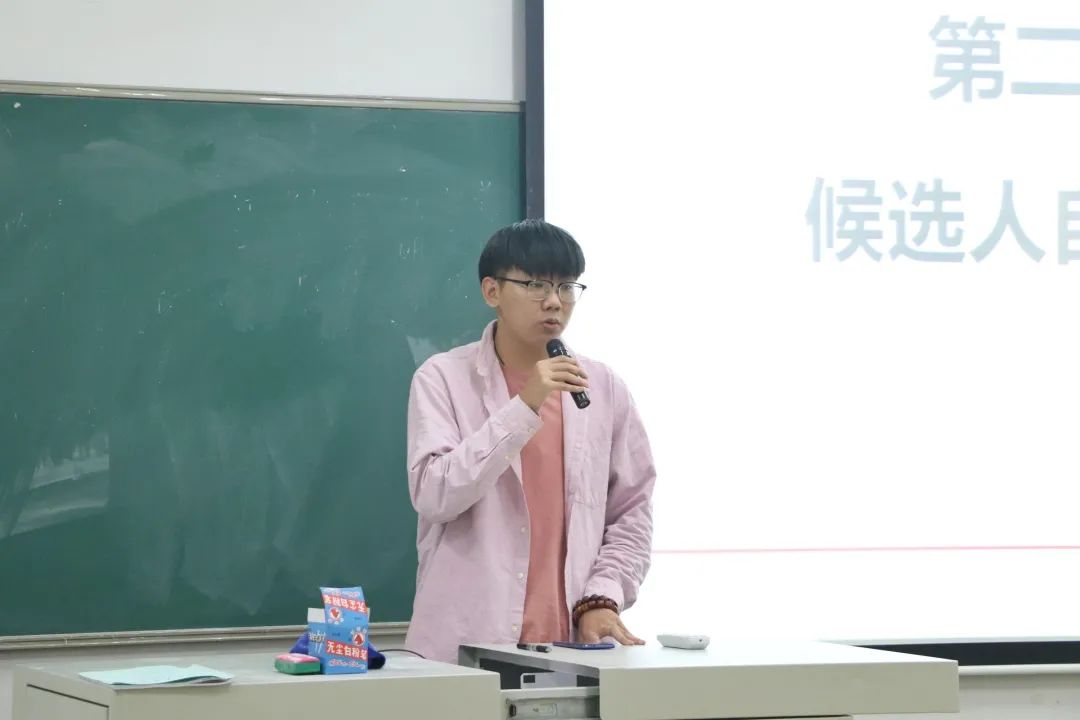 紧接着,代表推选会进行第二项,代表候选人按选票顺序上台进行自我介绍,台下候选人根据个人表现进行不记名投票。每位候选人都做好了充分的准备,在简要介绍了自己的工作经历以及优异成绩后,均表示自身有较好的群众基础,能够客观公正地反映学生心声等等优势,并且表明自己有着为同学们服务的坚定决心。
