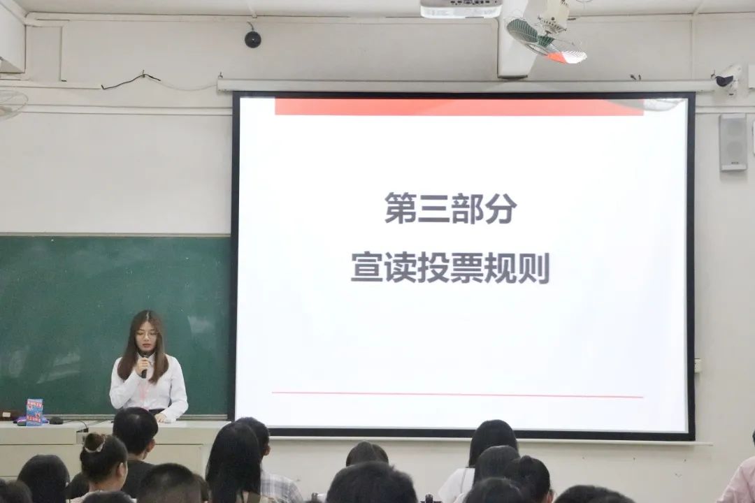 接下来推选会进行第三、四项:宣读投票规则以及投票,投票采用差额无记名的投票方式。每位候选人积极行使自己的权利,以公平公正的态度投上了自己宝贵的一票。