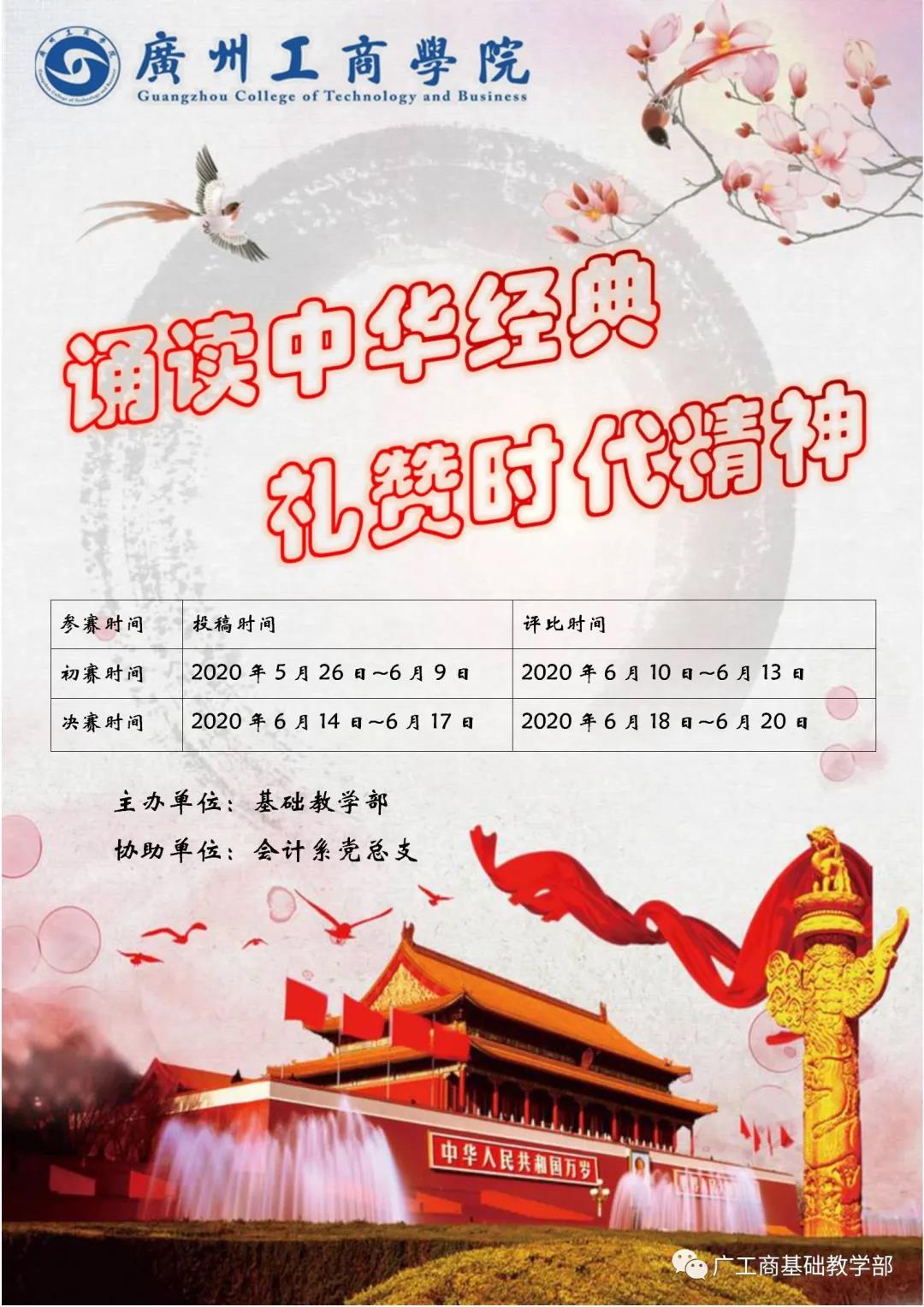 为了让同学们对中华经典有更加深刻的认识,基础教学部主办、会计系党总支承办了本次“诵读中华经典 礼赞时代精神”线上朗诵活动。