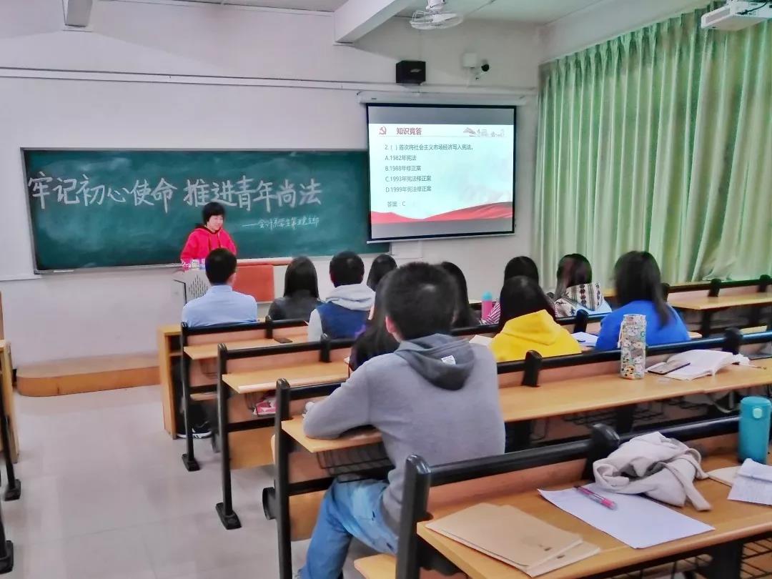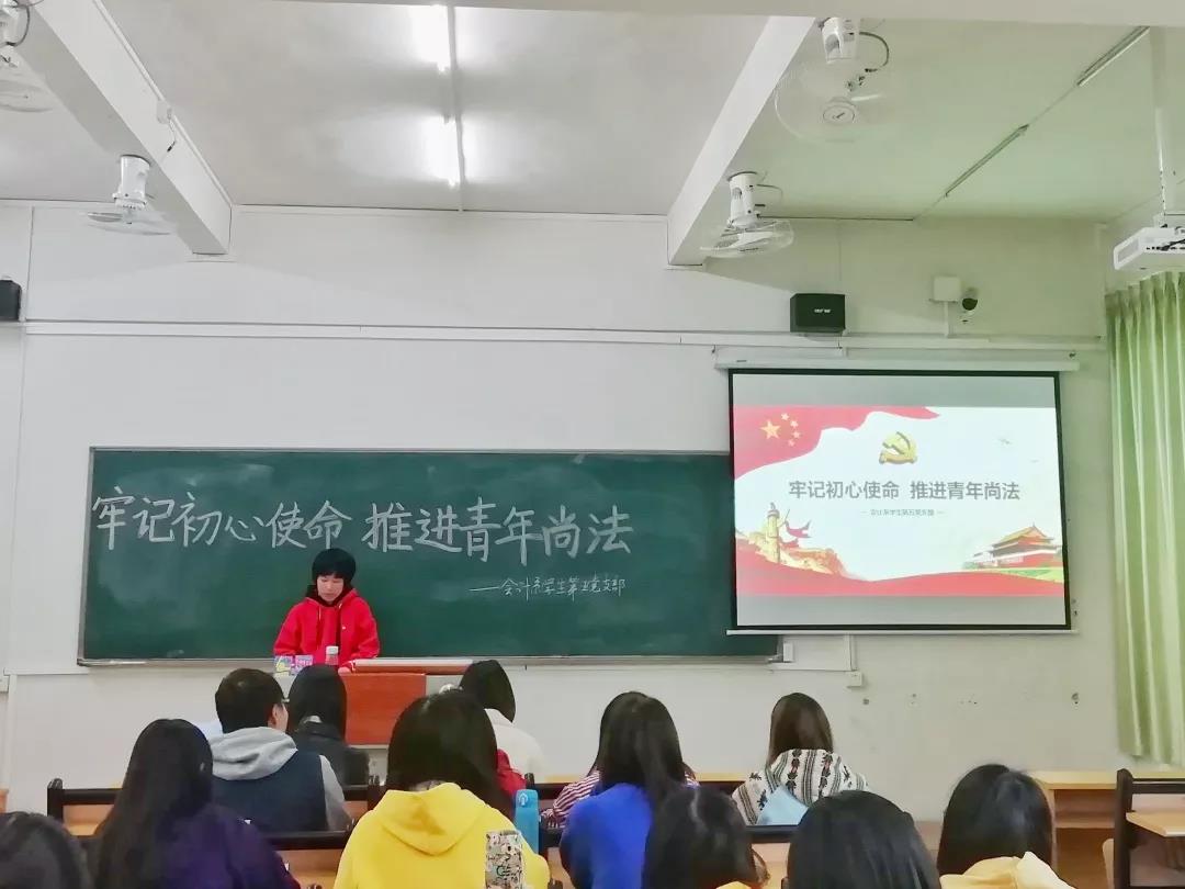 12月19日下午,会计系学生第五党支部在第二教学楼A202课室开展“牢记初心使命,推进青年尚法”主题教育活动,本次活动应到党员同志21人,实到党员同志20人,发展对象作为列席人员5人参与本次活动,活动由学生党员丁文婷同志主持。