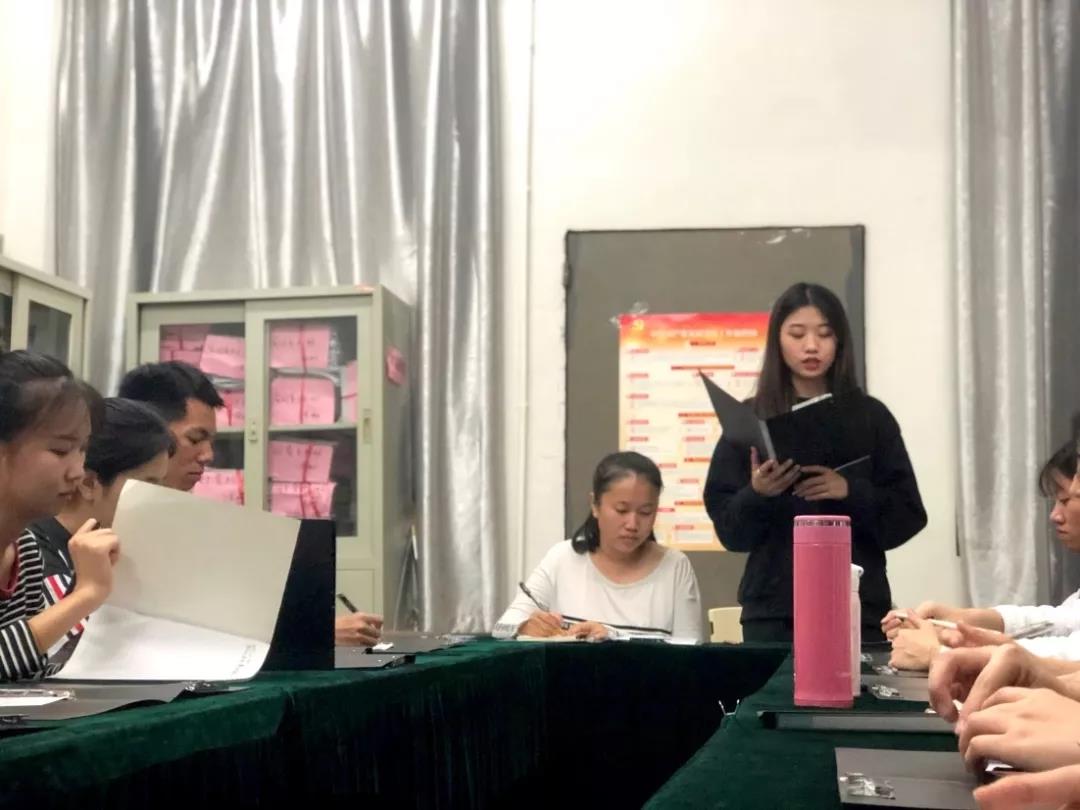 首先,入党积极分子组长马丹纯同学提出,用朗诵红色经典篇章和诗歌的形式回顾新中国成立70年来的光辉历程,以此牢记中国共产党人对时代使命的执着和坚守,努力与追求,进而推动全员更加自觉地为实现新时代党的历史使命而不懈奋斗。
