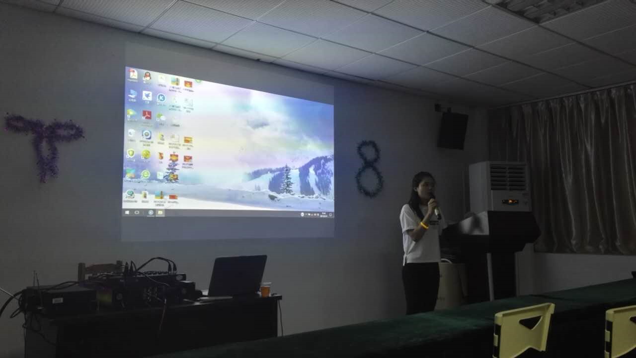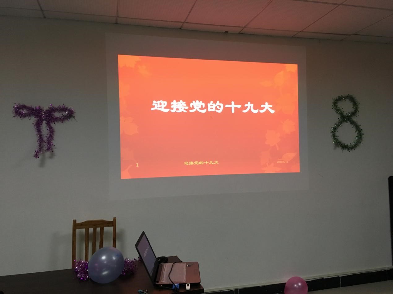 本次班会共有三个环节,首先第一个环节是关于十九大的知识普及,由我班团支书进行主持。她将提前做好的PPT放到投影幕上,图文结合,向同学们一一讲述了十九大的会议背景、会议议程、会议要点,并展示脱贫攻坚,反恐工作,振奋精神真抓实干等一系列各地区迎接十九大的活动。